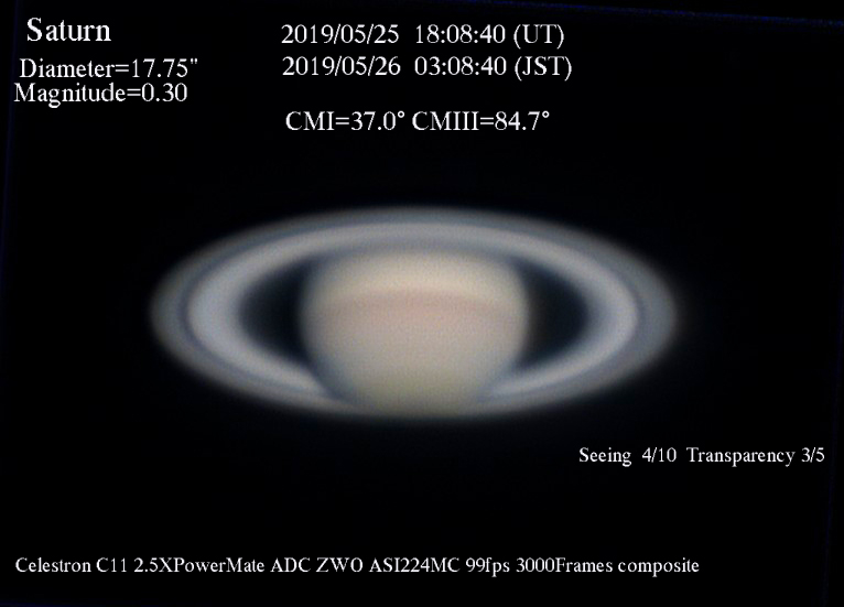 小さくなったシーズン初土星です。お帰り!と言った感じですかね。